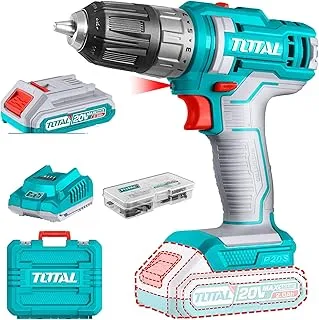 أنجز مهامك بدقة وكفاءة مع شنيور توتال اللاسلكي 20 فولت، المصمم لتوفير أداء قوي في أعمال الثقب والربط اليومية. يأتي بقوة عزم 45 نيوتن.متر، مع بطاريتين ليثيوم 20 فولت لضمان عمل متواصل، بالإضافة إلى طقم ملحقات متكامل 47 قطعة لتغطية جميع احتياجاتك في الورشة أو المنزل.